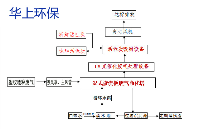 橡胶厂有机废气处理设备工作原理是:废气进入喷淋塔处理装置,首先经洗涤处理工艺段,去除颗粒物与粘稠物质,再经光解废气处理设备,然后再次进入到活性炭吸附箱进行吸附处理,洁净的空气经离心风机排出。